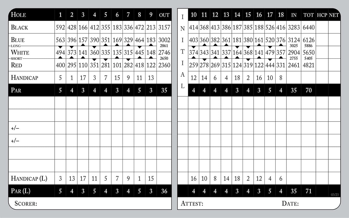 “Large distinctive bunkers, rugged, rocky outcroppings and accessible greens make for a fantastic round.”
